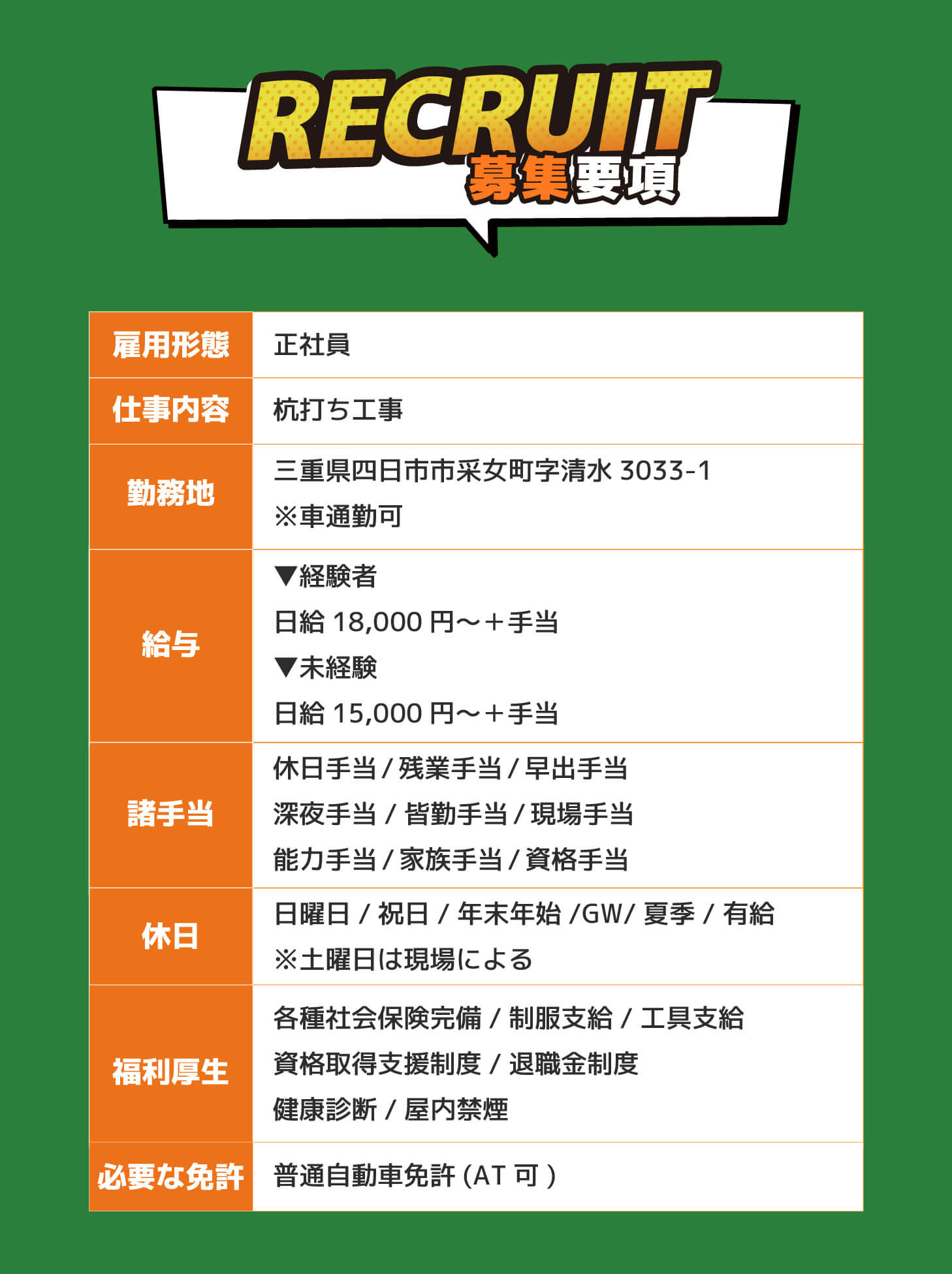 | 事業内容 | 杭打ち工事,基礎工事 |